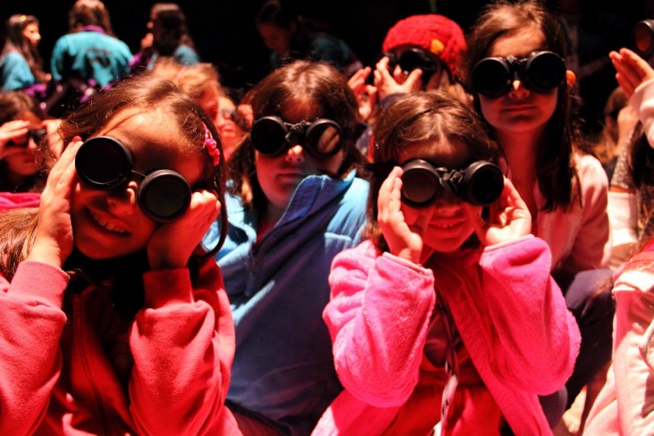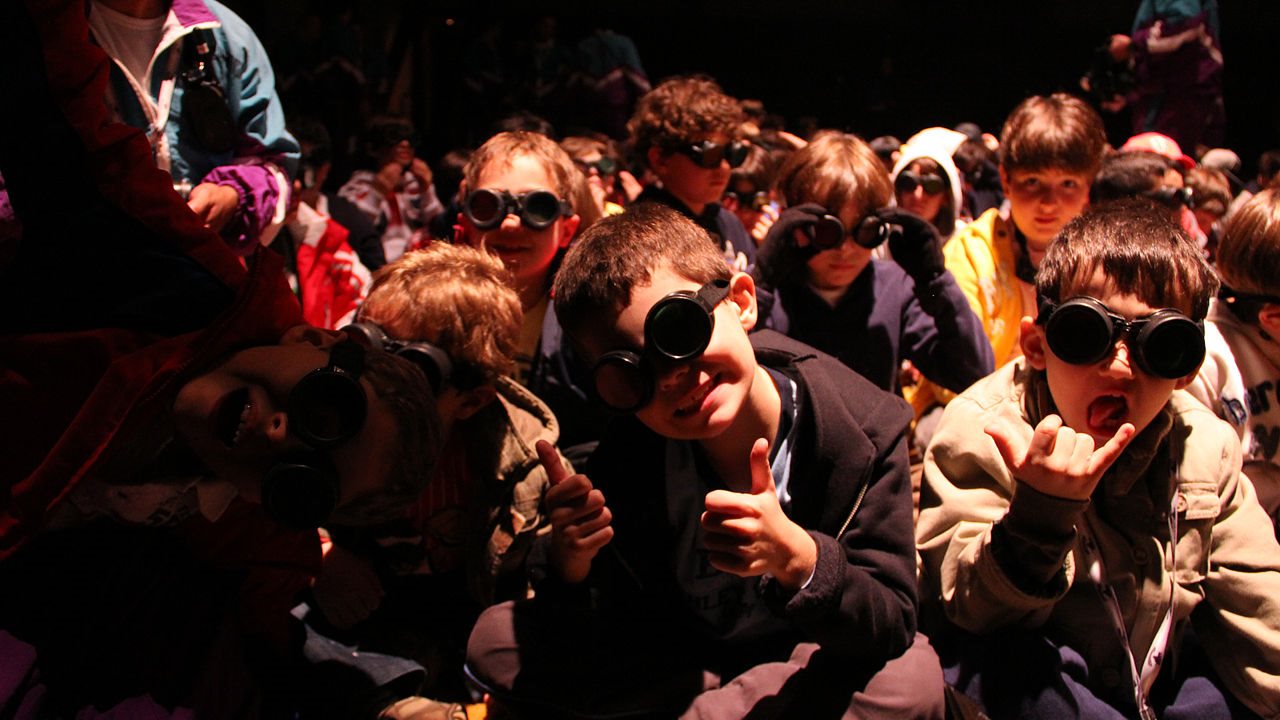Reunidos na frente do palco, os acampantes recebem óculos especiais e seguem, maravilhados, as sombras que parecem saltar da tela e vir em sua direção. Logo eles ficam sabendo do que se trata, sem sustos. Nada mais simples: são somente fenômenos de luz que enganam os olhos e divertem a plateia.