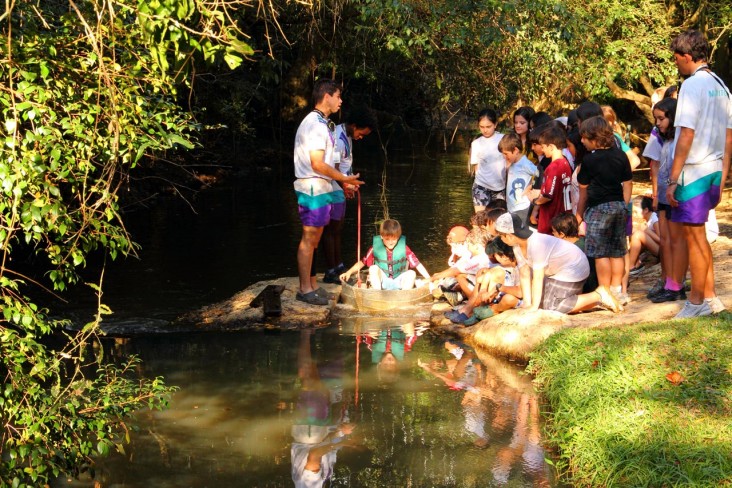 Para que serve a água? Como pode ser represada? Como funciona uma eclusa? Estas e outras perguntas podem ser respondidas a partir da experiência prática de manipular uma mini-eclusa. Assim, todos percebem a força do rio, o que é navegacão, como funciona uma barragem.