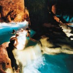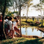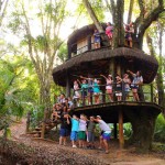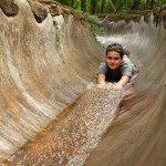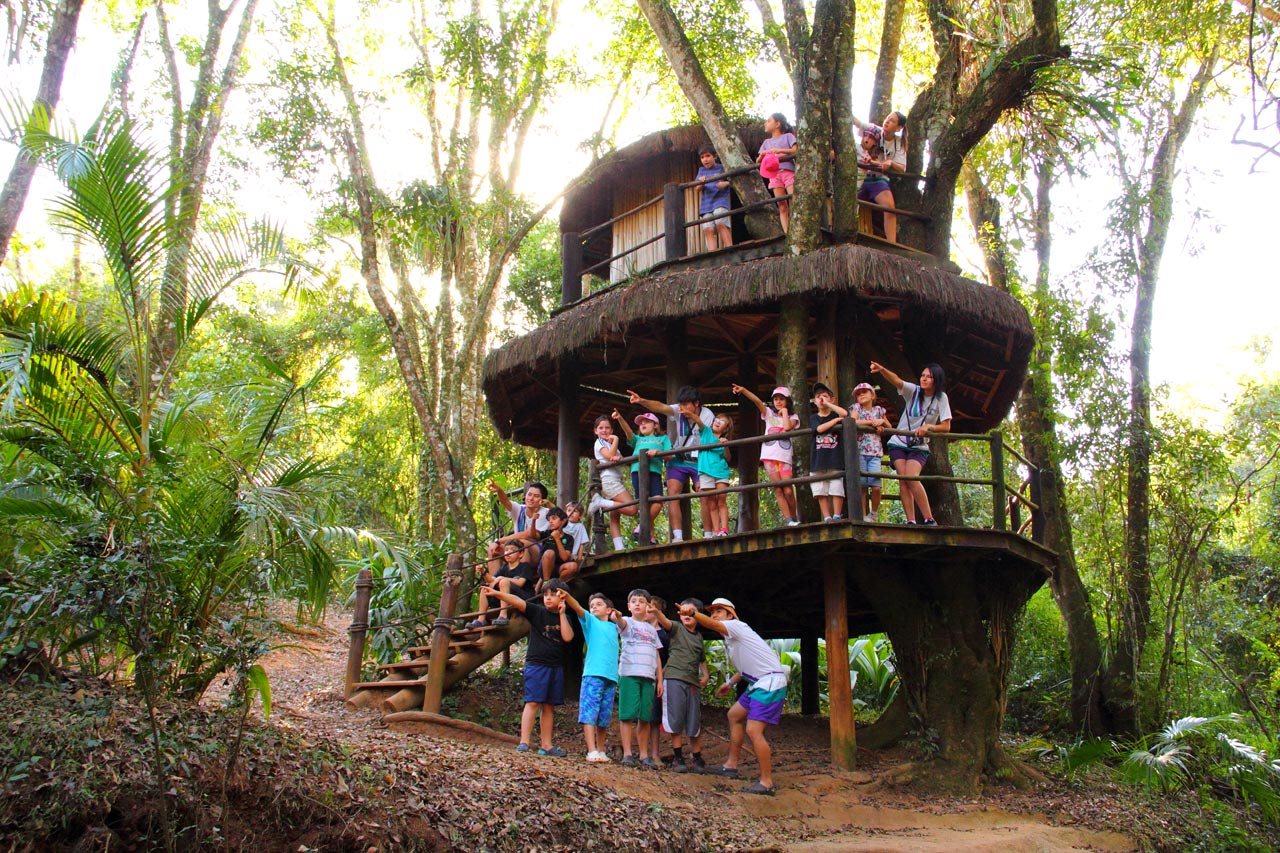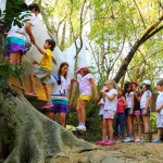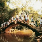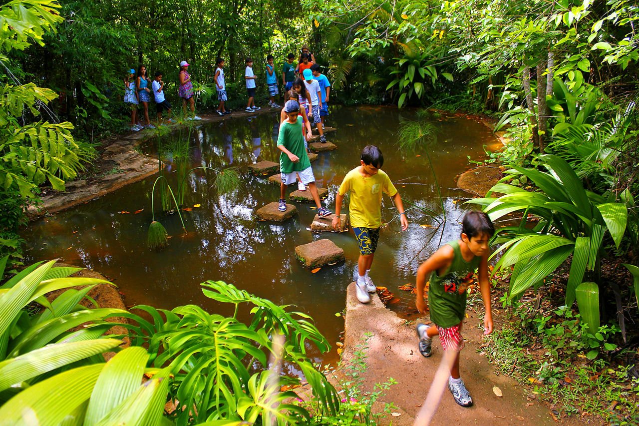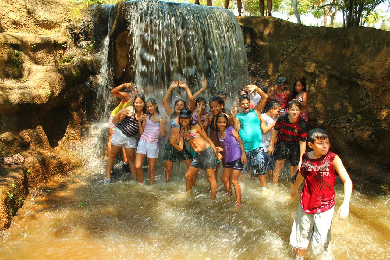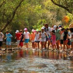 Pulando pedra por pedra, os aventureiros atravessam o rio. Esse é o começo de uma trilha quase cinematográfica, num verdadeiro estilo “Indiana Jones”. Onde estará a passagem secreta? Enquanto procuram, todos aproveitam para tomar um banho de cachoeira.