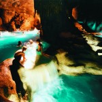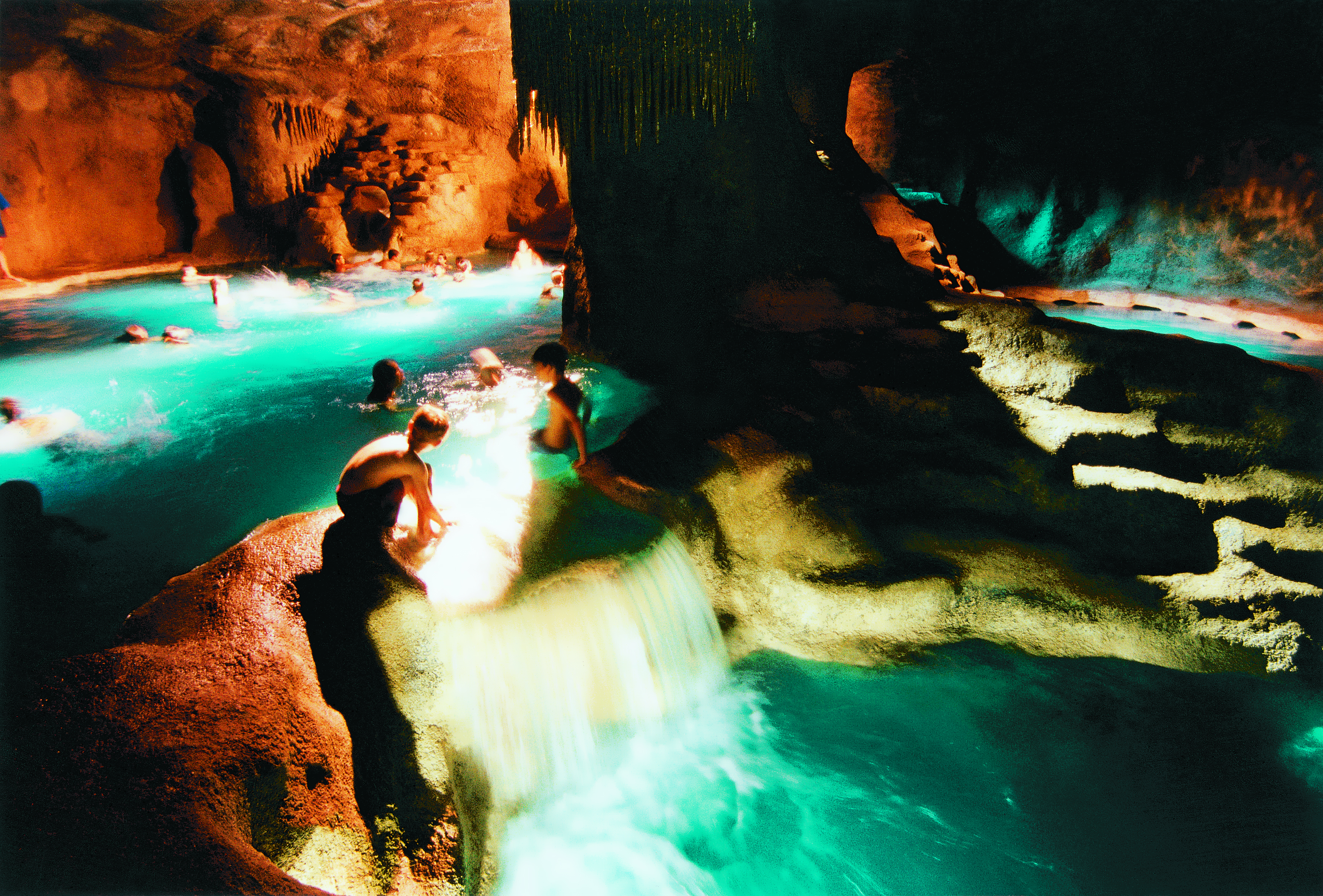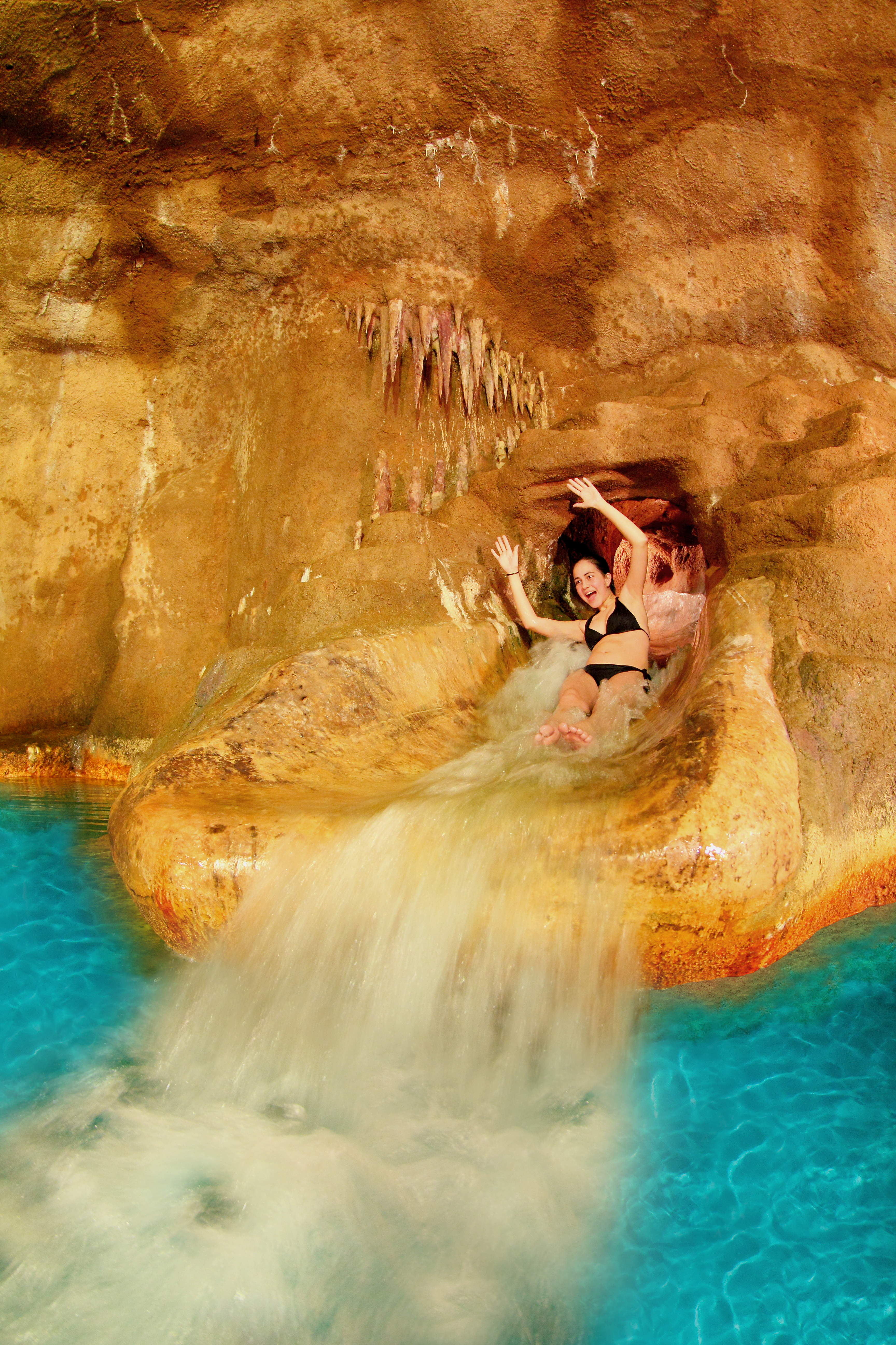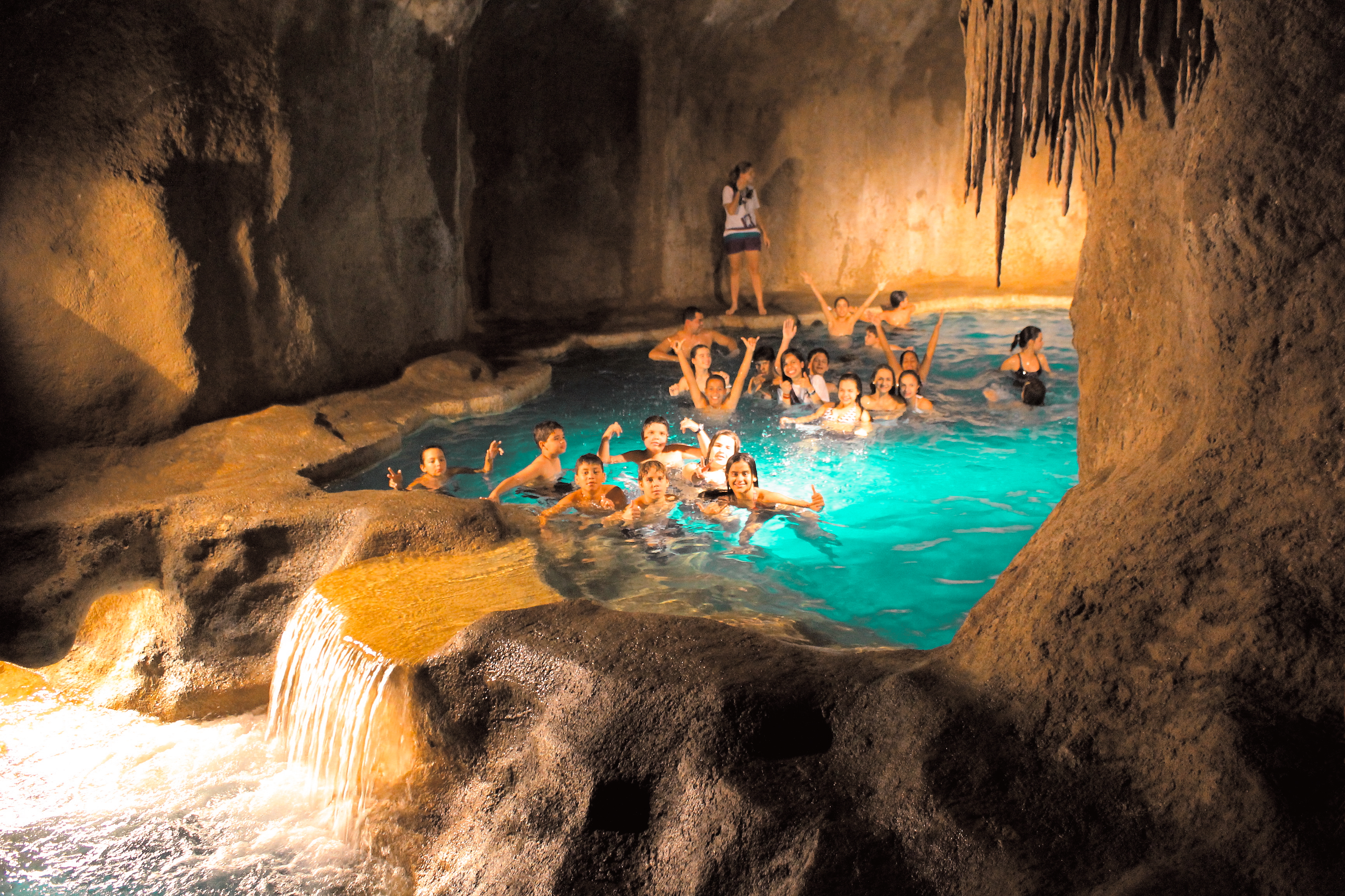 A missão é decifrar o Enigma da Pedra! Entrando por uma fresta aberta na rocha, os acampantes nem imaginam o que irão encontrar. O que haverá no final do túnel? A expectativa acaba na parede da caverna. O que seriam aquelas pedras incrustadas na rocha? Abririam uma porta secreta? Tocando em uma delas, observam que ela rola até uma cavidade. Mas, de repente, sentem que a caverna está começando a inundar. Mostrando agilidade, tentam mover a segunda pedra. Mas, infelizmente, tudo continua na mesma. Finalmente, a terceira pedra é a resposta para o Enigma! Diante de seus olhos maravilhados, a parede se abre e, surge a Caverna do Lago Azul, com suas cachoeiras, tobogã e água aquecida. Um verdadeiro paraíso!