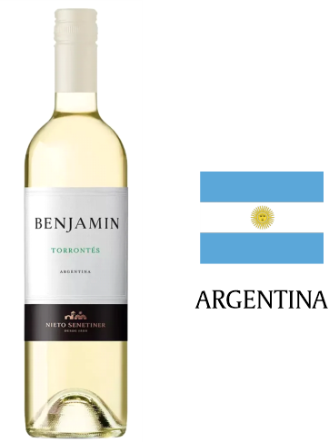 TORRONTÉS DESCRIÇÃO:Benjamin é um vinho jovem e amável, ideal para acompanhar a autenticidade de cada momento todos os dias. Vinho amarelo brilhante e de reflexos esverdeados. Aromas intensos de flores brancas, frutas cítricas e sutis notas de ervas que seduzem o olfato. Na boca é refrescante e equilibrado. |